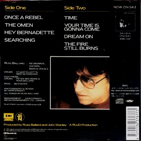 | 1. Once a Rebel 2. The Omen 3. Hey Bernadette 4. Searching 5. Time 6. Your Time Is Gonna Come 7. Dream On 8. The Fire Still Burns 9. Hold On 10. The Fire Still Burns edit. Version- 11. The Ghost Inside